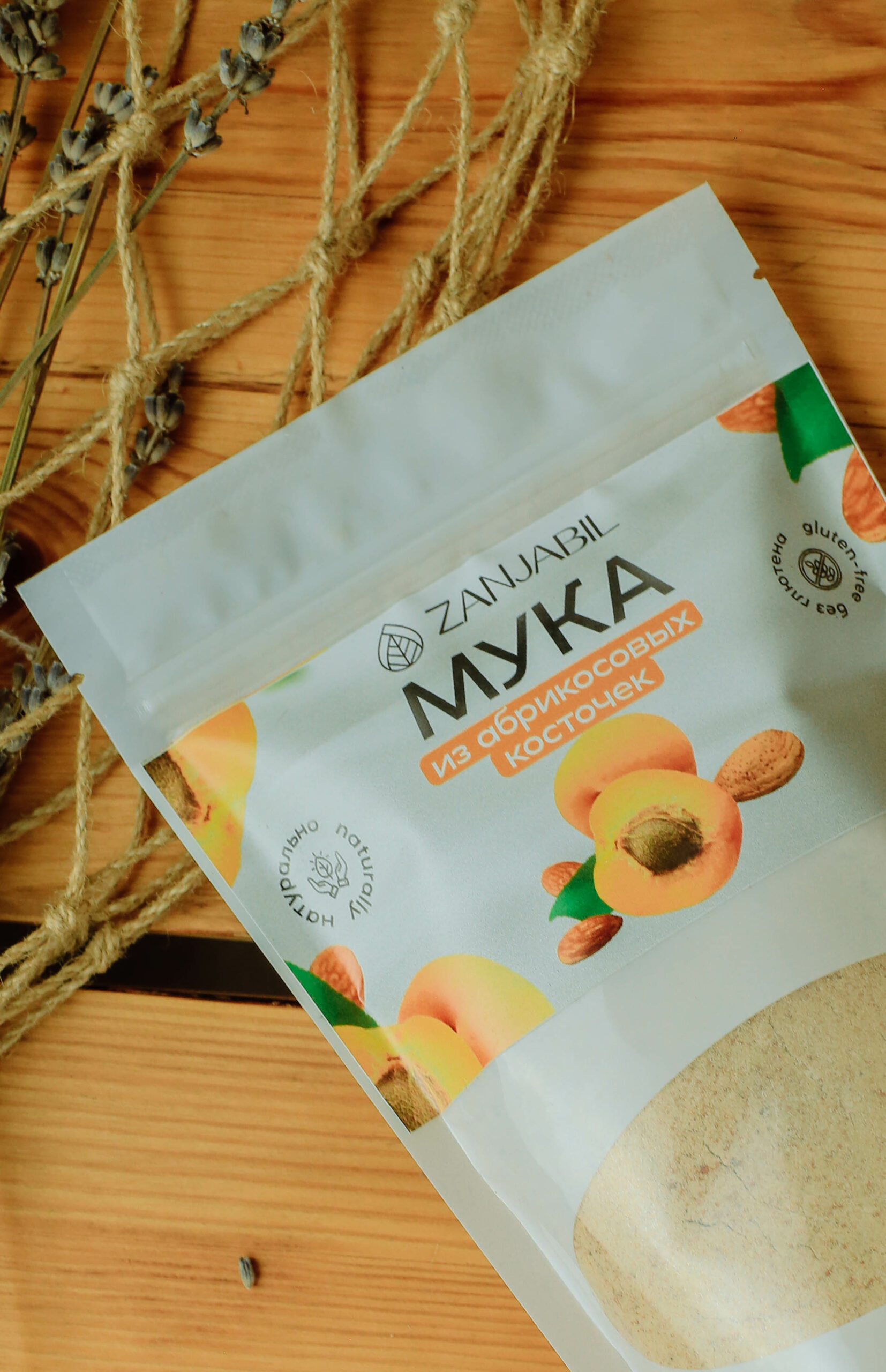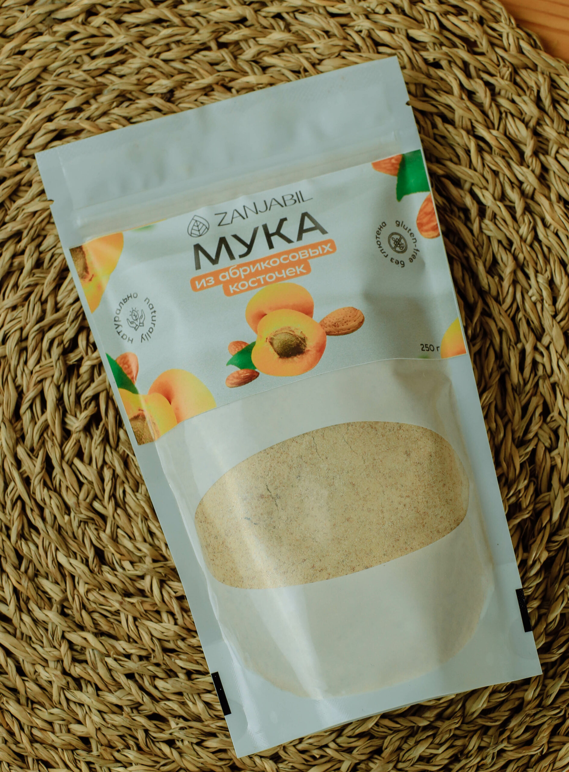В чашу блендера поместить абрикосы, сахар, муку, пряности, овсянку, масло, творог, миндаль, абрикосовую муку, мед. Измельчить.